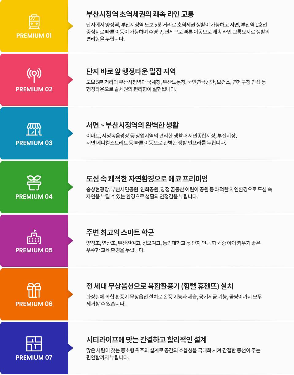 행정과 주거가 만나는 골든 블록 부산시청과 주요 행정기관이 집중된 압도적 입지 가치 부산의 행정 중심지에 위치하여 공공기관 종사자 및 배후 수요가 풍부한 안정적인 주거 환경을 제공합니다. 더블 역세권의 쾌속 교통 네트워크 시청역과 연산역을 동시에 누리는 최상의 이동 편의성 지하철 1호선과 3호선을 도보로 이용하는 역세권 단지로 부산 전역 어디든 막힘없이 연결되는 교통의 중심입니다. 생활의 격을 높이는 원스톱 인프라 이마트와 거제시장 등 풍부한 상권을 곁에 둔 편리함 쇼핑부터 의료, 교육시설까지 단지 인근에 완비되어 멀리 나가지 않아도 모든 생활이 해결되는 밀착형 인프라를 자랑합니다. 중앙하이츠만의 고품격 특화 공간 희소가치 높은 평면 설계와 감각적인 내부 인테리어 공간 활용도를 극대화한 스마트 설계와 트렌디한 주거 디자인을 적용하여 입주민의 자부심을 채워드립니다. 도심 속에서 즐기는 녹색 힐링 단지 인근 공원과 조경이 어우러진 쾌적한 도심 생활 도심 한가운데에서도 자연의 여유를 느낄 수 있는 산책로와 휴게 공간이 마련되어 진정한 웰빙 라이프가 가능합니다. 검증된 브랜드의 주거 프리미엄 오랜 신뢰와 가치를 이어온 중앙하이츠의 완벽한 시공 브랜드만의 앞선 기술력과 세심한 마감으로 시간이 흐를수록 깊어지는 주거의 가치와 편안함을 약속합니다.